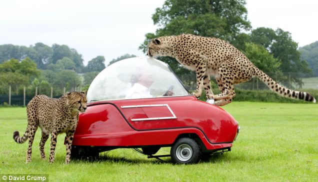 > 英国游客驾泡泡车遭猎豹袭击