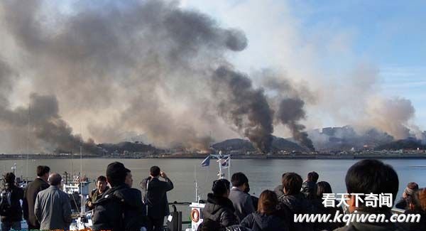 当地时间11月23日,遭遇炮击的韩国延坪岛硝烟弥漫。当天14时30分左右开始,朝鲜向韩国一侧的延坪岛附近发射200多枚海岸炮炮弹,其中数枚落在有居民居住的岛上,导致60到70栋建筑起火或受损,并造成人员伤亡。韩国军队随即回击,发射80余发炮弹,并出动F15和F16战斗机飞往出事地点附近,应对紧急事态。韩朝两国相互炮击录像曝光 互发280多枚炮弹 韩国进入最高警戒